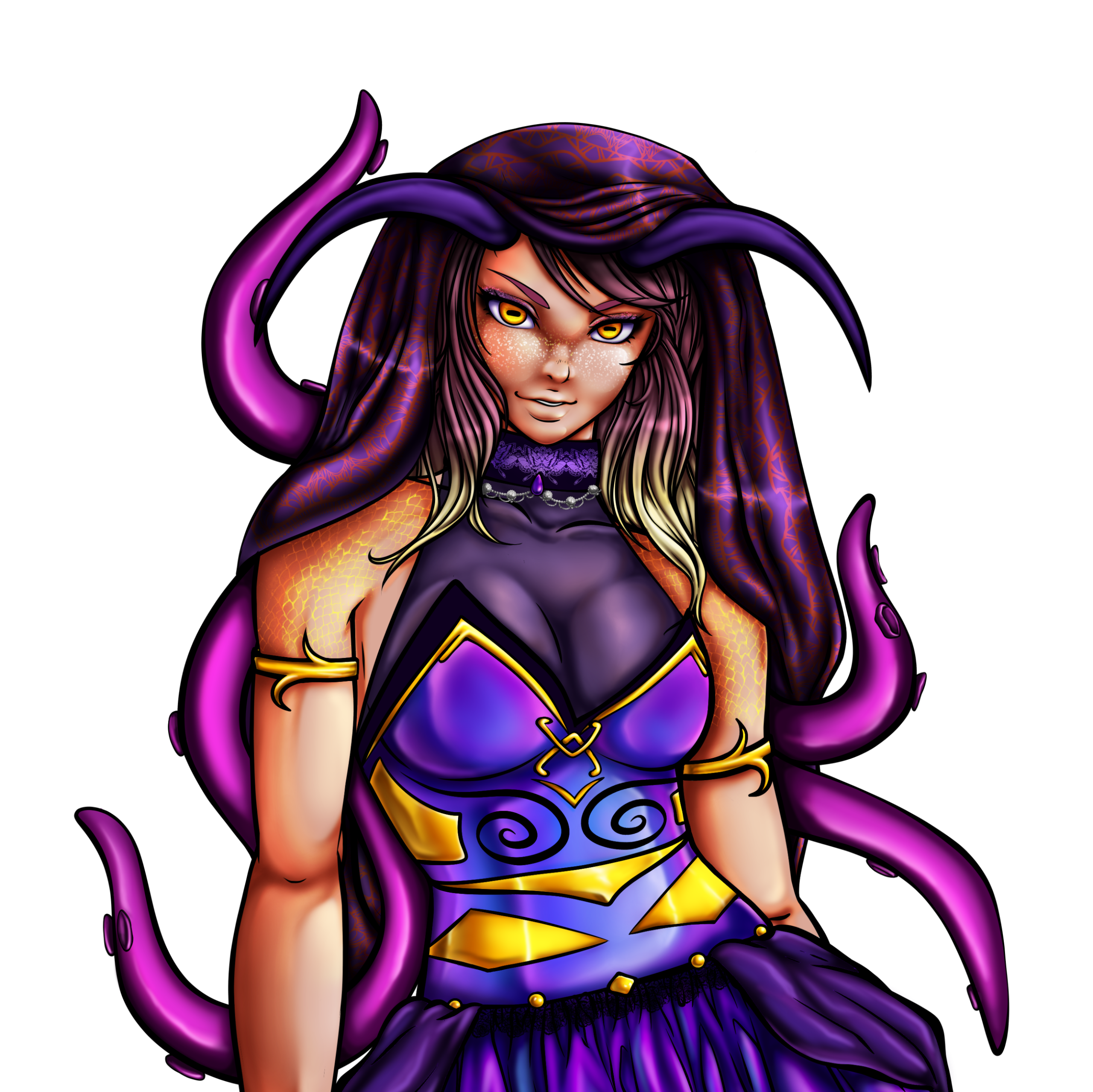 Dreamscape is the song the ocean hums before it devours you. In the human world, she moves unseen as a writer, spinning tales of longing, despair, and divinity that leave readers sleepless. In Faerwood, she is worshipped and feared in equal measure. A goddess of the Hartstall Sea, born from its deepest trench and bound to its silence. She speaks to those who dream too deeply, luring them toward truths no mind should hold.Her words are a curse wrapped in beauty. To hear her voice is to risk madness; to see her in her true form is to lose the meaning of “surface.”